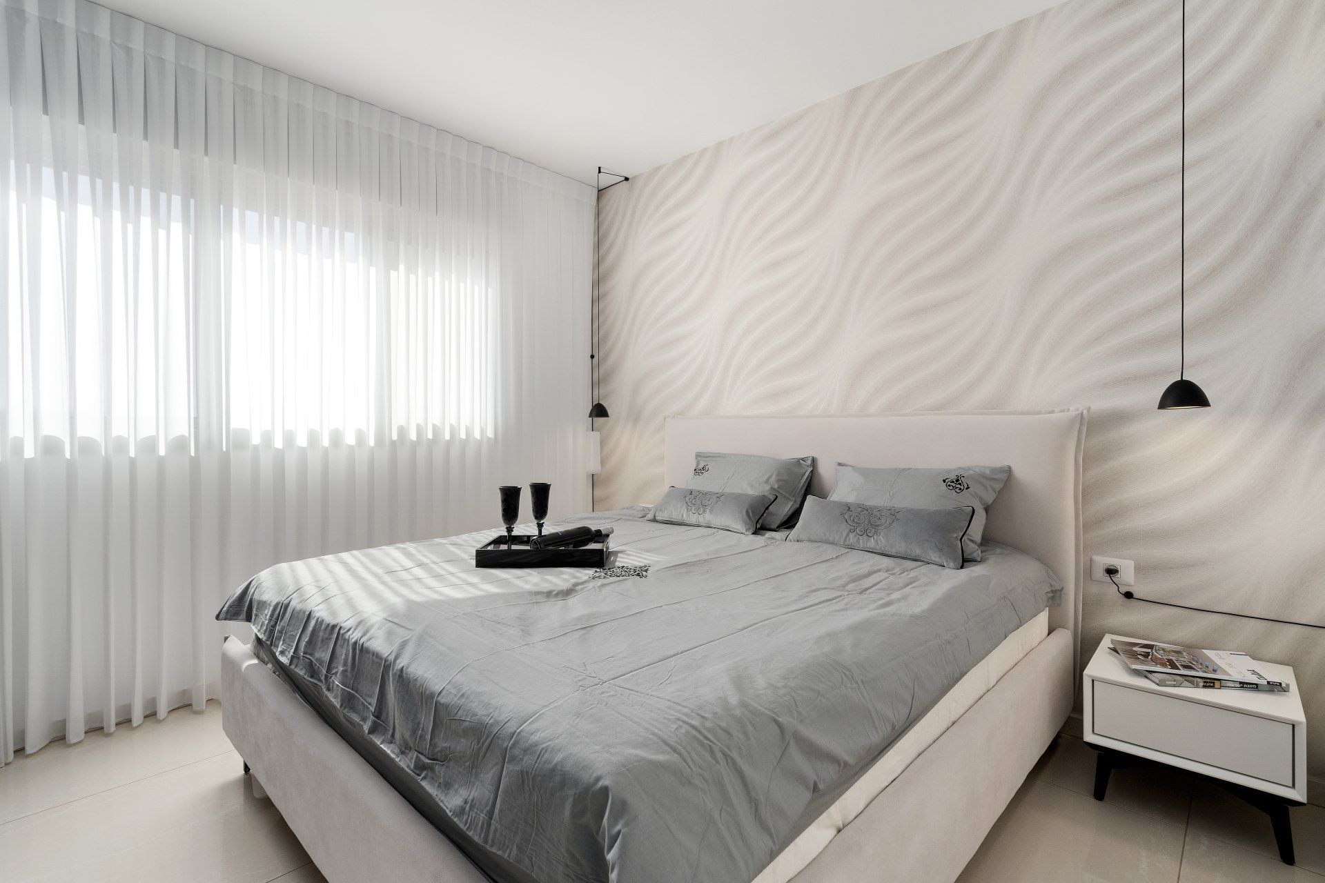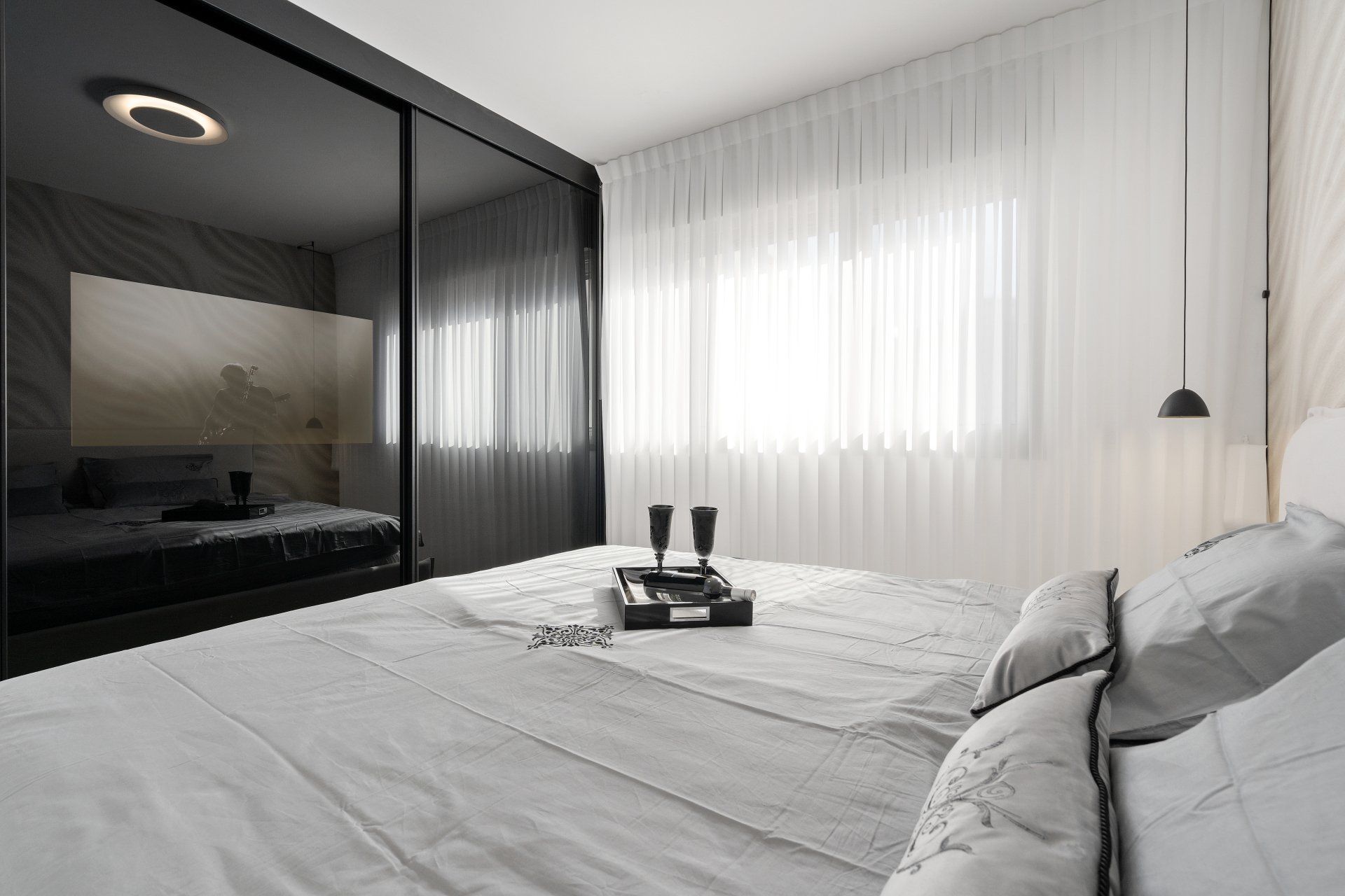 כמו כן, תוכנן חדר שינה מוקפד וחמים, המשלב לתוכו את רצונם של דיירי הבית בתחושת מלון יוקרתית.