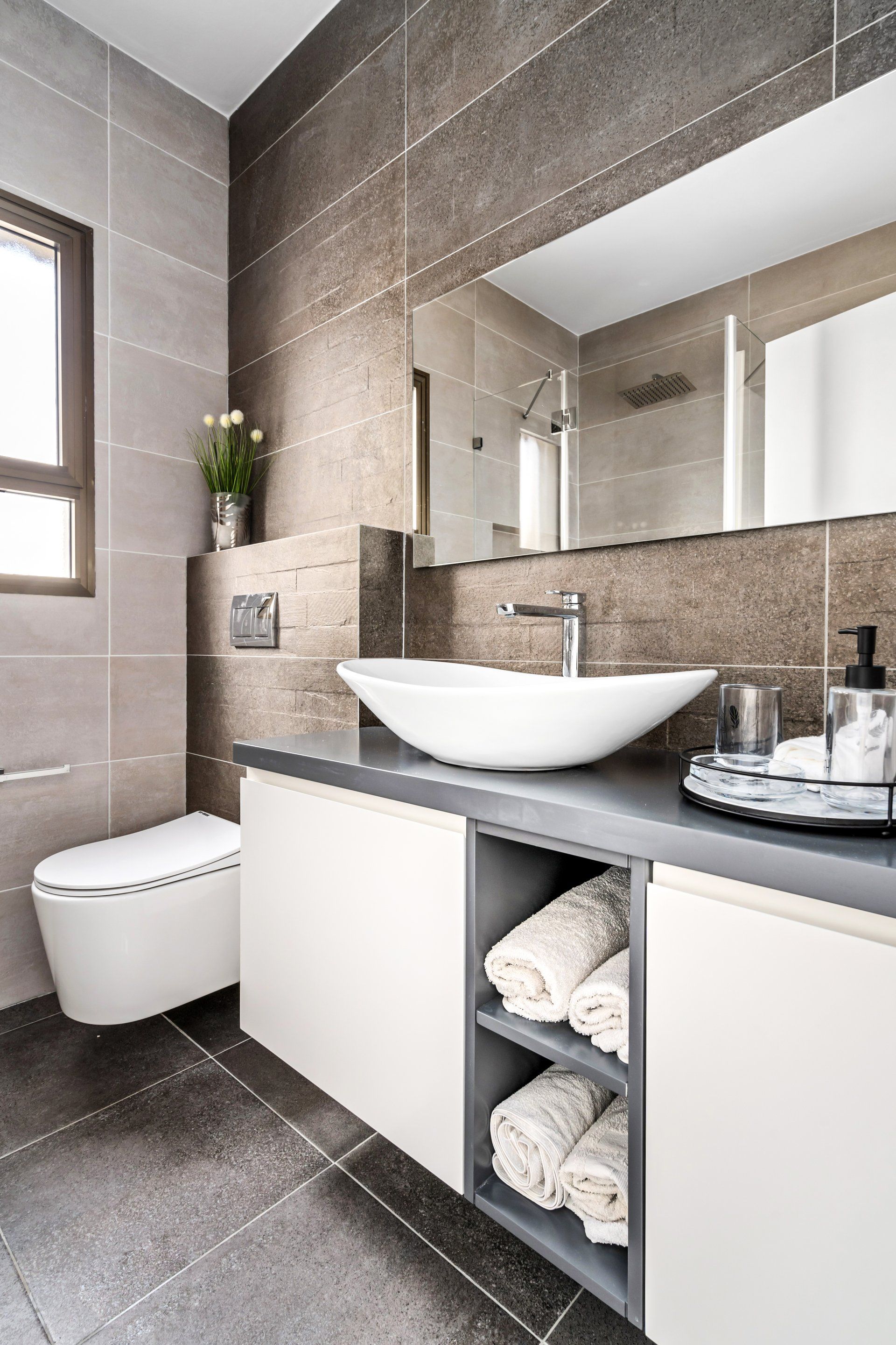 חדרי רחצה מרווחים ומפנקים תוכננו בקומה העליונה ותאים ייחודיים למגבות מגולגלות תוכננו להשלמת המראה היוקרתי המזכיר את התחושה בבתי המלון.