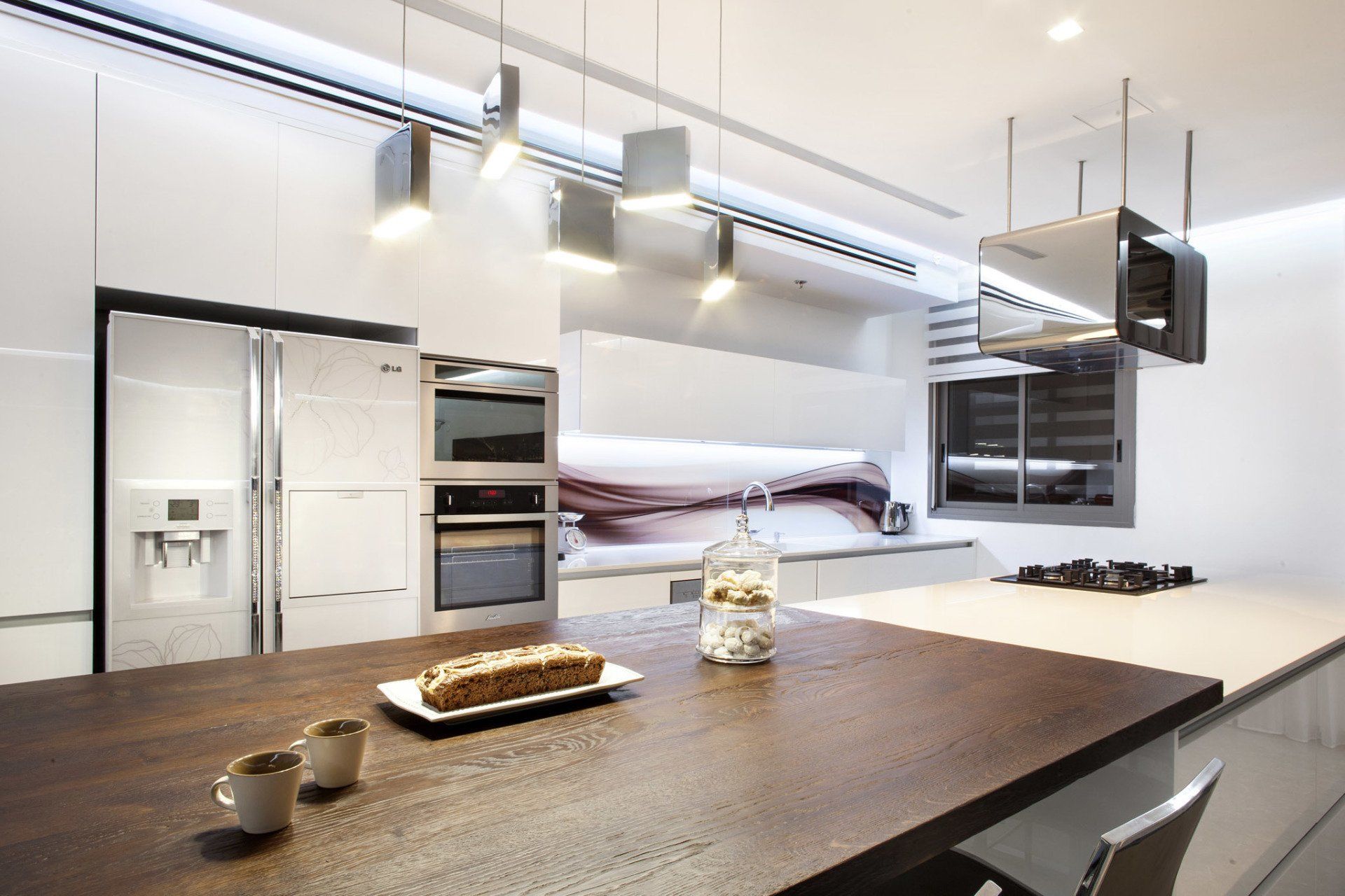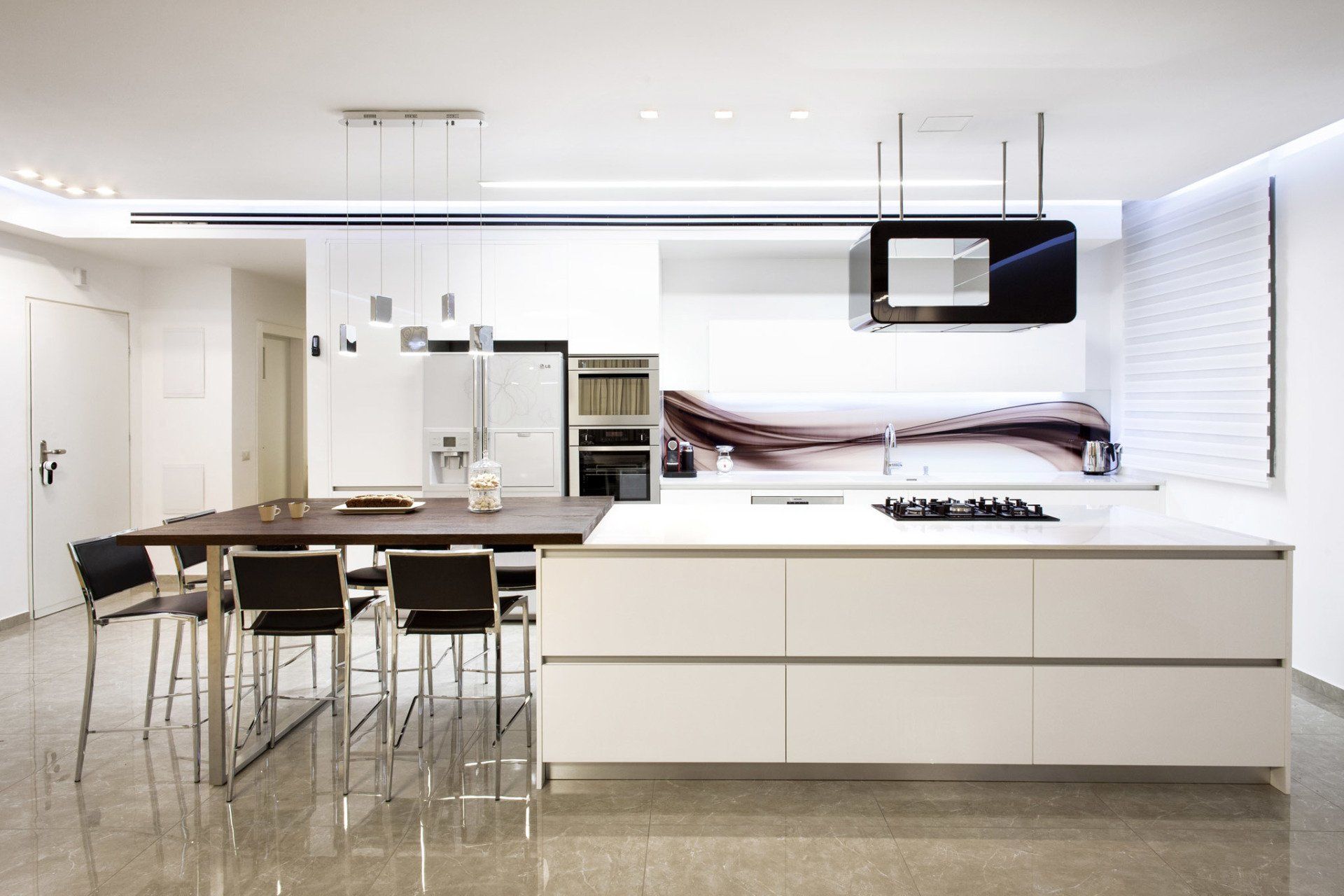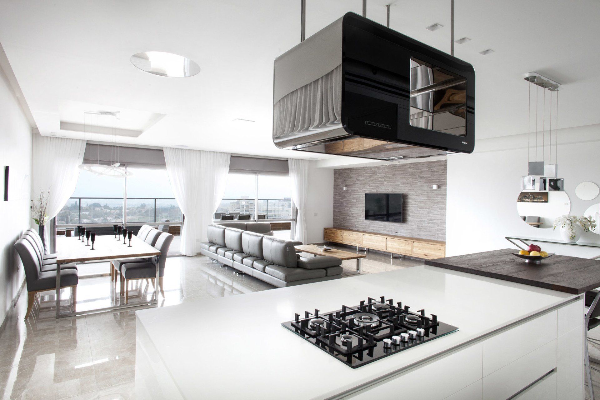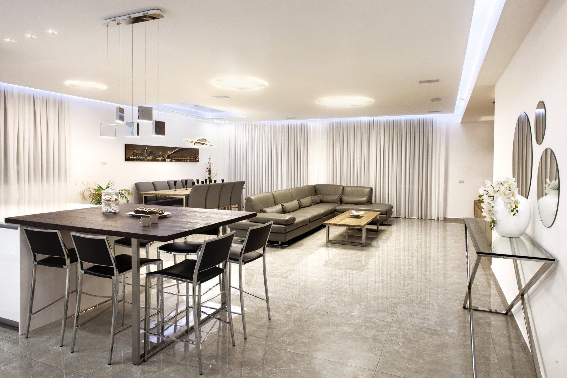 מכיוון שמדובר בפנטהאוז מרווח בעל אופן ספייס ענק המכיל 3 פונקציות: מטבח, פינת אוכל וסלון מרכזי הייתה חשיבות רבה לשימוש בחומרים וצבעים שישתלבו היטב לכדי הרמוניה בחלל.