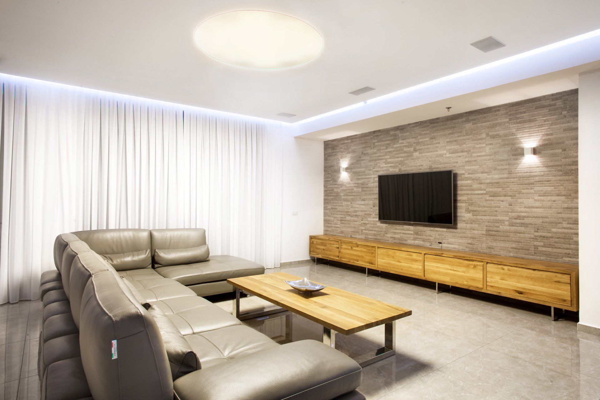 הצורך בהכנסת שקט חמים פגש בהעדפת הדיירים למינימליזם מודרני. לצורך כך נבחר הצבע הלבן בשילוב עם אבן וגווני אפור היוצרים יחד מראה עוטף ושלם למרות הבהירות. חומרי העץ והזכוכית הם אורחים בחלל המעניקים רובד נוסף ועניין.